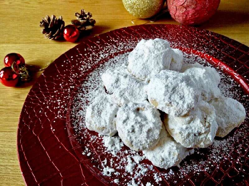 | 4 | Βγάζουμε από το φούρνο, αφήνουμε να κρυώσουν πολύ καλά και τους ρίχνουμε σε ένα ταψί γεμάτο άχνη. Τους γυρνάμε να καλυφθούν καλά και τους μεταφέρουμε σε μία πιατέλα, όπου τους σερβίρουμε σε πυραμίδα, πασπαλίζοντας κάθε σειρά που βάζουμε με επιπλέον άχνη. |