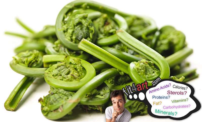 How many carbs are in a fiddlehead fern? See in detail all the carbohydrates contained in this food, as well as their content per 100 grams.